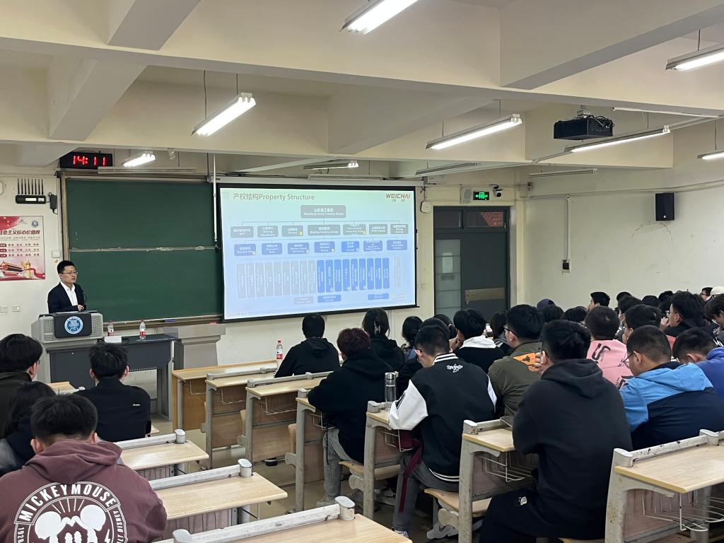 4月26日,按照青岛理工大学-潍柴现代产业学院规划部署,产教融合系列课程在西海岸新区主校区一教B202开讲。潍柴动力股份有限公司正高级工程师王意宝作了题为《发动机技术最新发展动态》的学术讲座,讲座由产教融合办公室主任姜芙林主持,机械制造教研室仲照琳参加讲座,来自机械与汽车工程学院车辆工程专业、机械设计制造及其自动化专业2020级的百余名同学聆听了讲座。