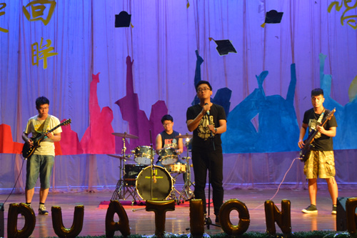 届全体毕业生的微电影拉开了帷幕,现场毕业生回忆过往时光,感动连连。随后各节目陆续精彩上演,活力四射的舞团用动感的舞蹈将大家从回忆的伤感中拉回现场,点燃全场气氛;《注定》等歌曲流露出淡淡的离愁别绪,引起在座同学的共鸣;小品《我要离婚》、相声《四大天王是蒙古族》幽默风趣,引得全场观众笑声阵阵;魔术《歌剧魅影》让观众们眼前一亮,为晚会添上了浓墨重彩的一笔;朗诵《再见,再见》用深情的话语带领大家追忆过往,审视当前,畅想未来。惜辞乐队的精彩演出,辅导员老师的毕业寄语,更是给同学们留下了满满的感动,将晚会气氛带向高潮。最后,晚会在