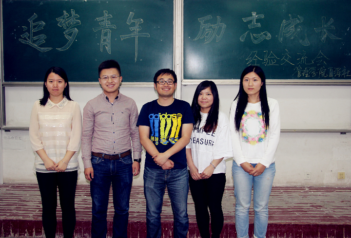 6月10日下午,管理学院于二教阶402举办毕业生励志经验交流会。到场的嘉宾有13级辅导员王琦老师及四位11级优秀毕业生。