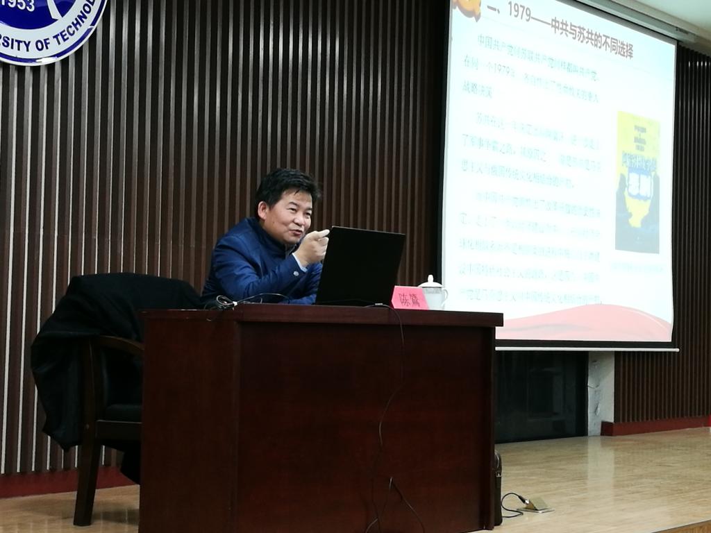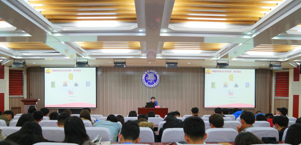 他表示,中国共产党是中国历史的产物,是中国传统文化的积极继承者和发展创新者,党的许多政治理念、工作方法均来源于对传统文化智慧的充分吸取和推陈出新。他结合改革开放以来我国科学技术、人文社科等方面取得的重大突破和优秀成果,解读十九大报告中对坚定文化自信的新观点、新要求,帮助大家进一步提升民族自豪感和文化自信心。他勉励大家努力学习知识、增长本领、扎实工作,在书本、实践中深刻体会马克思主义新的时代内涵,充分汲取中华民族传统文化养分,弘扬民族精神、坚定文化自信,做党坚定地理论践行者和文化传播者。“大道之行,天下为公”。他鼓励当代青年人弘扬民族精神,坚定道路自信、理论自信和文化自信,坚定跟党走中国特色社会主义道路。陈鷟教授语言风趣幽默,对历史事件娓娓道来,分析鞭辟入里,精彩的报告使师生获益匪浅。