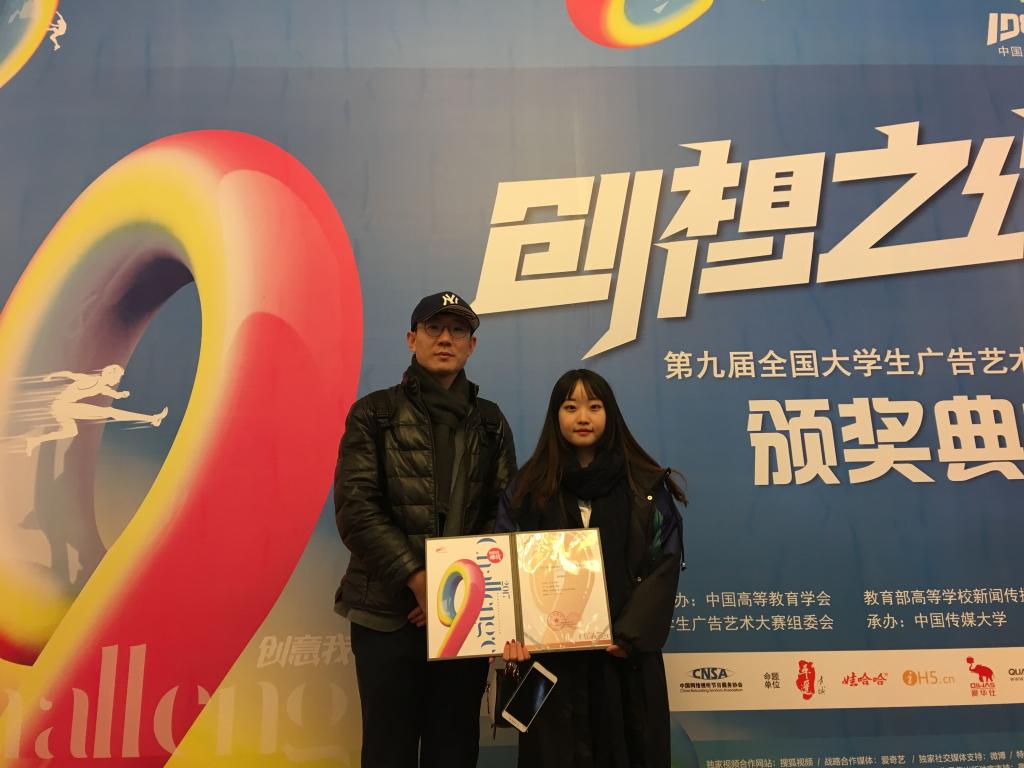 今年我校广告学专业捷报频传,在校竞赛基地的支持下,通过师生共同努力,荣获第九届大广赛全国三等奖1项、省级二等奖1项、省级三等奖4项、省级优秀奖7项,创参赛以来最好成绩。
