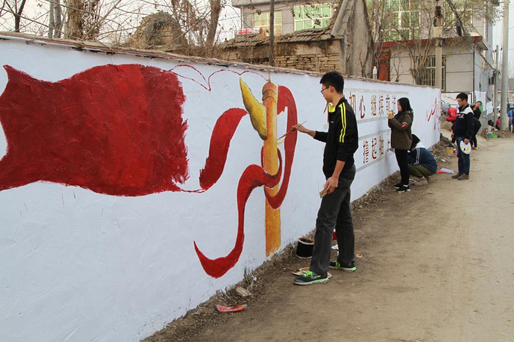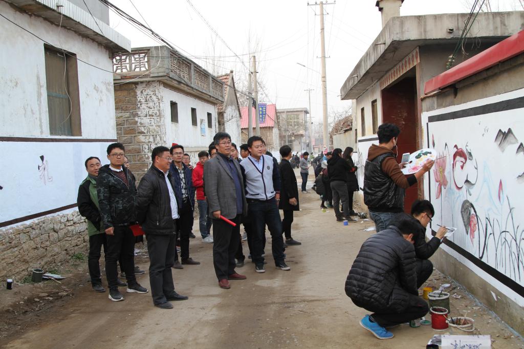 11月28日下午,校区师生党员为驻村党员发放了专门印制的同农村密切相关的党的十九大宣传资料。在省派第一书记孟凡勇的陪同下,土木学院副院长、临沂校区土建工程系党总支书记、主任苗吉军同驻村党员共同学习了十九大报告中关于扶贫工作的有关精神并与大家展开深入交流;土建工程系建筑装饰工程技术专业120余名学生,历时6天,以“党的十九大”、“社会主义核心价值观”和“美丽乡村建设”为主题,绘制了30余幅作品,总面积达1000余平方米,直观形象地向群众宣传党的十九大精神;土建工程系道桥专业教师发挥专业优势,多次到村勘察测量,免费为板桥村完成了残桥重建设计和概算编制。