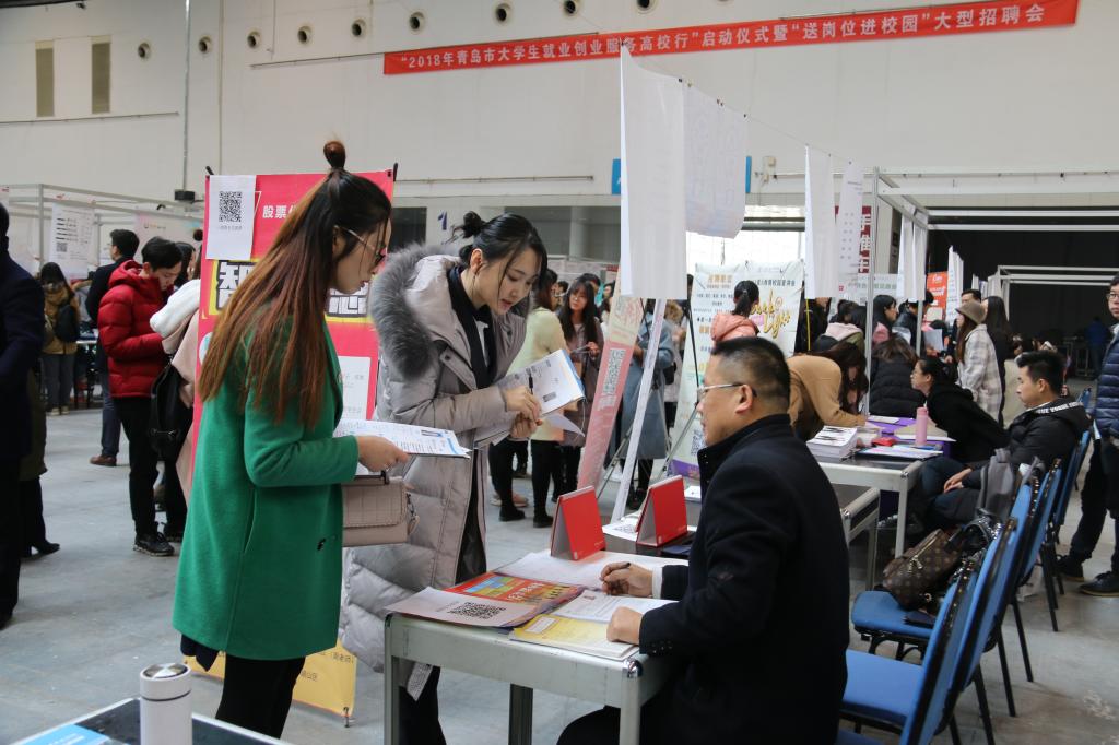 仪式结束后,与会领导视察了“送岗位进校园”大型招聘会现场,了解参加招聘会各企业的人才招聘情况。本次招聘会共吸引省内外知名企业近900家,如中国十七冶集团、上海宝冶集团、烟台港集团、莱芜钢铁集团、万达东方影都等;提供有效就业岗位29317个,涉及化学化工、机械制造、信息技术、经济管理以及能源、材料、外语、法律、新闻等多个行业,现场3万余名应届毕业生参加了此次招聘会,达成初步就业意向1.4万余人。本届招聘会从参会单位层次、提供岗位数量、参与招聘学生数量均比往年有较大突破,成为我市乃至半岛地区最大规模的毕业生招聘会。
