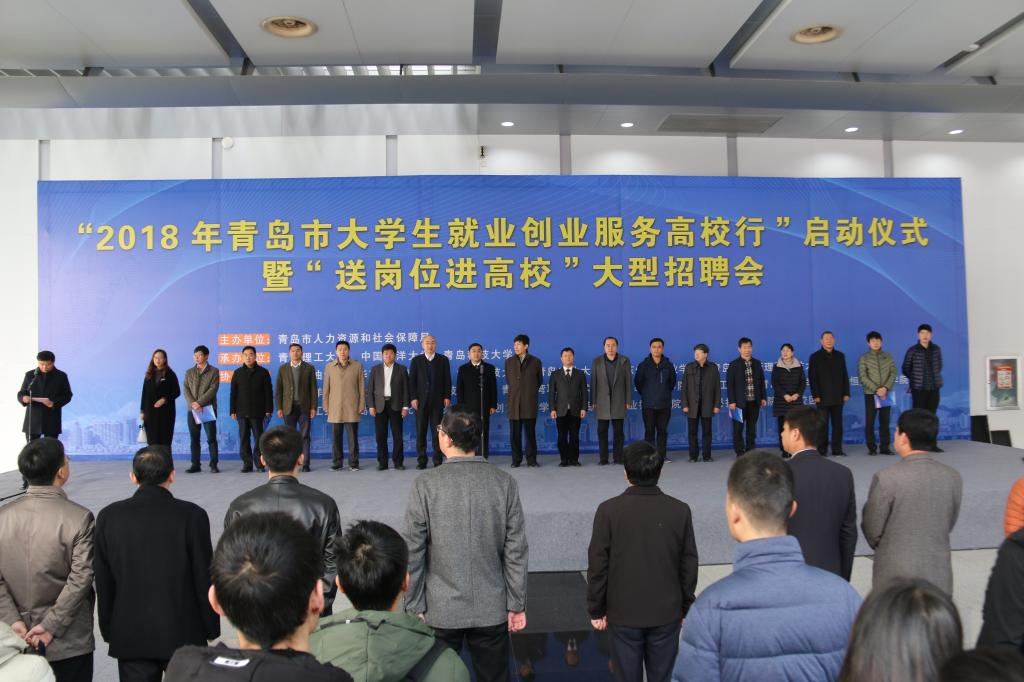12月2日,由青岛市政府、市人力资源与社会保障局及青岛理工大学等20所高校联合举办的“2018年青岛市大学生就业创业服务高校行”启动仪式暨“送岗位进校园”大型招聘会在青岛国际会展中心举行。青岛市委组织部副部长、市人社局局长纪敏出席启动仪式并致辞,学校副校长于德湖代表驻青高校发言,仪式由市人社局副局长韩红星主持。市人力资源社会保障局有关领导,20所驻青高校领导出席,各区市人社局、招聘企业以及大学生代表参加。